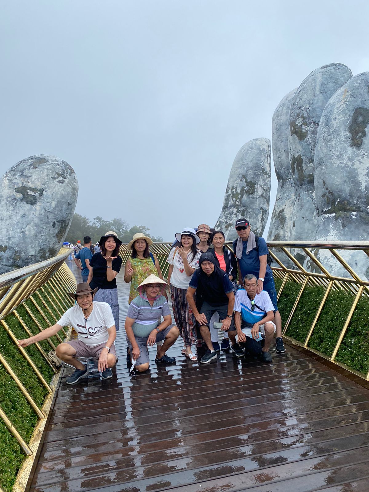 🌉 Stroll across the world-famous Golden Bridge at Ba Na Hills, held by giant stone hands